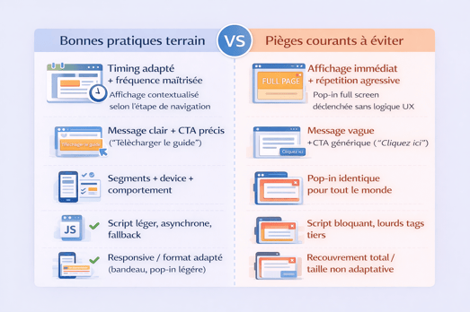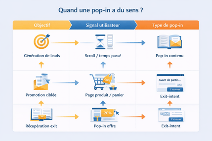 La pop-in devient alors un point de contact utile, aligné avec le parcours utilisateur, plutôt qu’un élément générique ajouté par défaut.